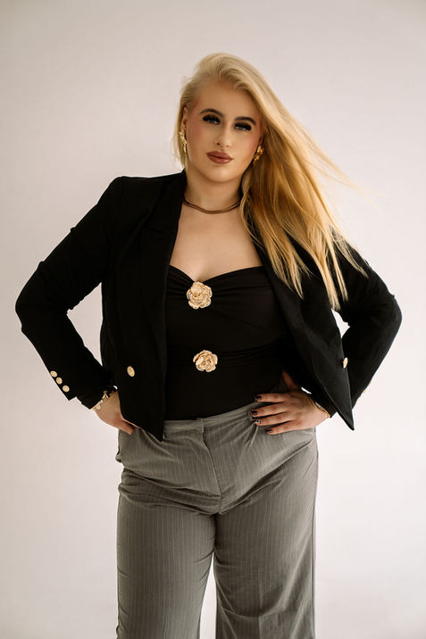 Druga odsłona miała bardziej wizerunkowy, lekko modowy charakter. Wyraziste stylizacje, czyste kadry i świadome pozy pozwoliły pokazać Marikę w innym wydaniu — pewnym, eleganckim i bardzo spójnym. To sesja, która pokazuje, że kobiecość plus size może mieć wiele twarzy i nie musi się mieścić w jednej definicji.